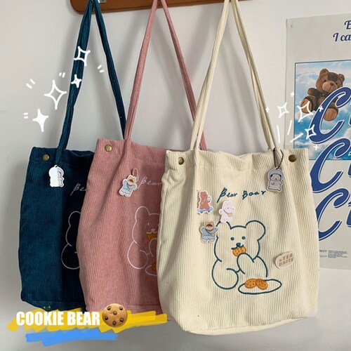 Buy Korean Tote Bag Cute Bear Corduroy Shoulder Bag Embroidery Online In India Etsy